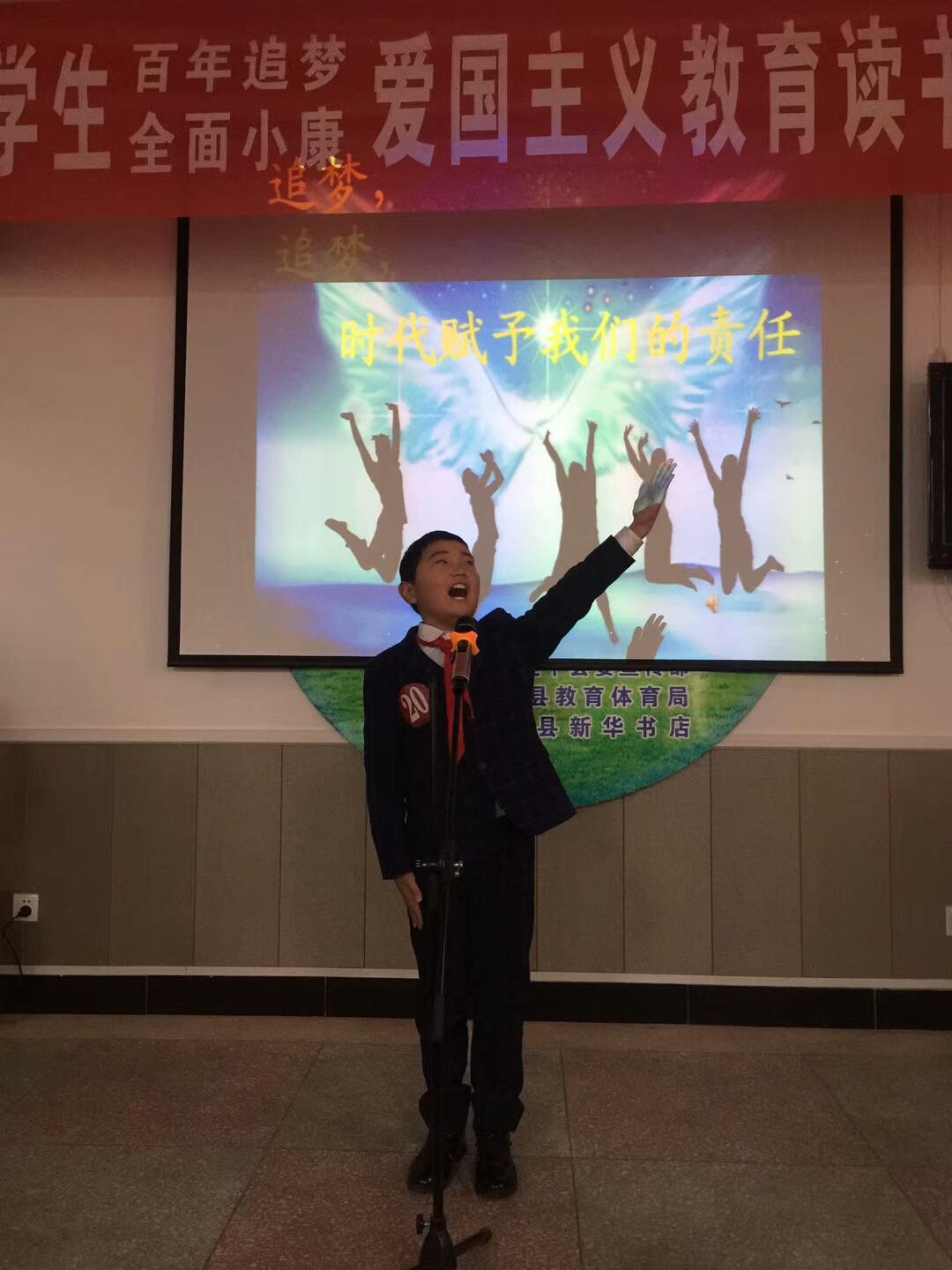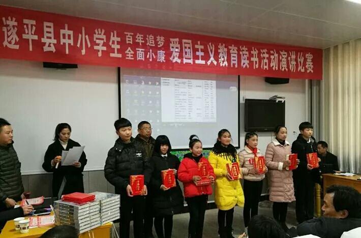 2017年12月29日上午,遂平县店与遂平县委宣传部、遂平县教育体育局联合举办了以“百年追梦 全面小康”为主题的爱国主义教育读书活动演讲比赛。来自全县中小学校的26支代表队共41名中小学生参加了比赛。县委常委、宣传部长闫慧勇,宣传部副部长、县电视台台长梁军峰,县教育体育局副局长王随柱,该店经理张丽君出席了活动。