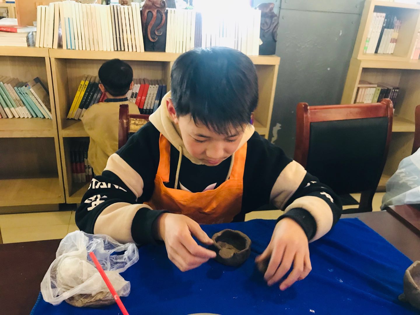 为提高孩子们对中华民族传统工艺的认识,也为了培养家长和孩子共同创作的兴趣3月31日下午获嘉县店尚书房举办文化沙龙“我为自己做水杯”陶艺活动。