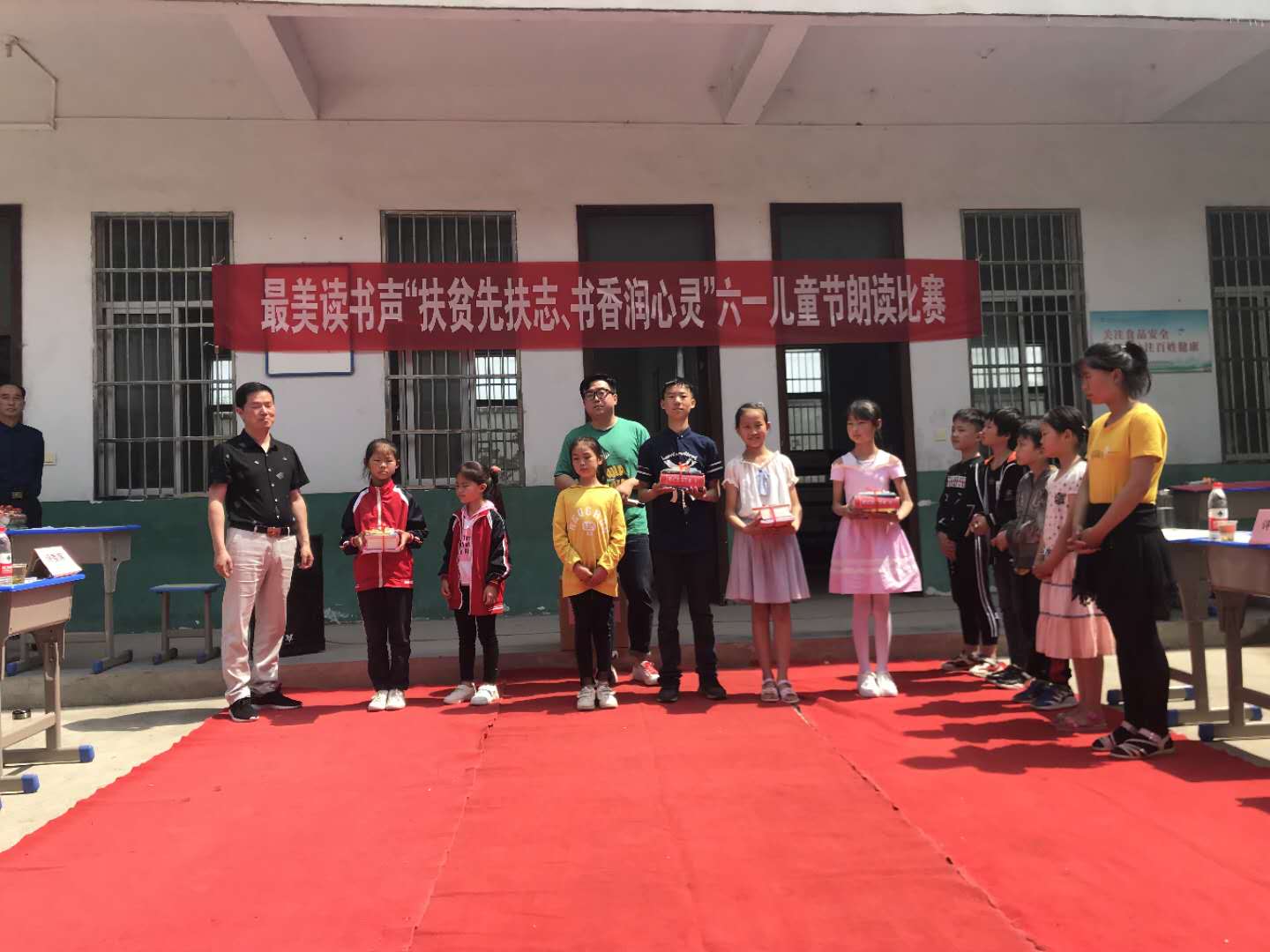 六一儿童节来临之际,5月31日上午,信阳市店与驻村扶贫对象村--光山县白雀园镇骆寨村小学共同举办了最美读书声“扶贫先扶志书香润心灵”六一儿童节朗读比赛活动,并为小学生们送去了工具书《现代汉语词典》《新华字典》以及文具、文体用品等学习用品。