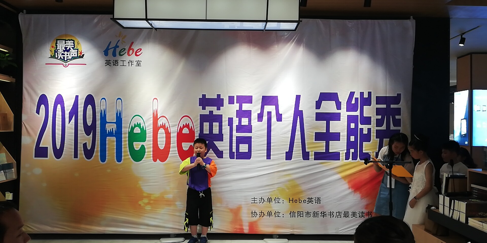 6月2日上午,信阳市店与Hebe英语工作室联合举办最美读书声英语个人全能秀,来自市区各学校的100多位小选手参加了英语口语演讲。