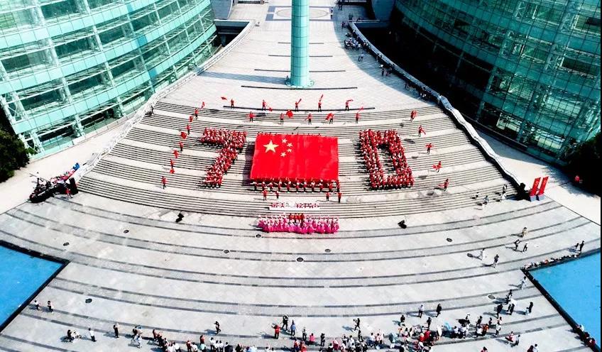 日上午,郑州市活动现场共设8个分会场。在河南省艺术中心广场前,400多名河南省新华书店员工深情诵读并齐声唱响《我和我的祖国》,展现了身处新时代、新征程中的新华人的骄傲与自豪。