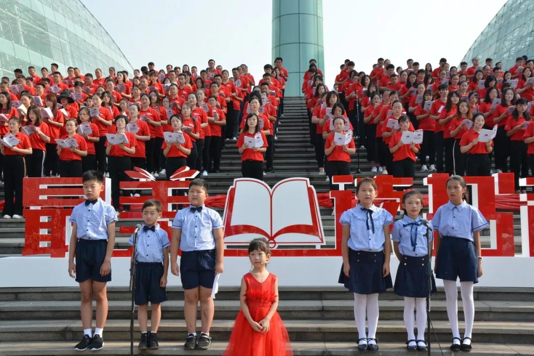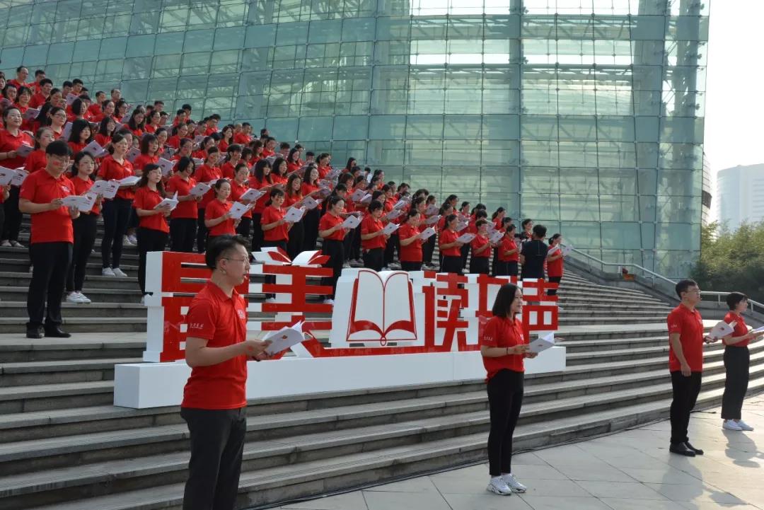 由中共河南省委宣传部、中原出版传媒集团指导,河南省新华书店发行集团承办的“庆祝新中国成立70周年‘最美读书声’全民阅读活动”伴随着悠扬熟悉的旋律和琅琅诵读声,9月28日上午10:30,百城同唱“我和我的祖国”庆祝新中国成立70周年——“最美读书声”全民诵读快闪活动,在我省各市县300多处文化地标、核心区域或商业中心同时举办,全省10000多名新华人携数万群众共同唱响“我和我的祖国”,用初心和使命为祖国70华诞献礼。