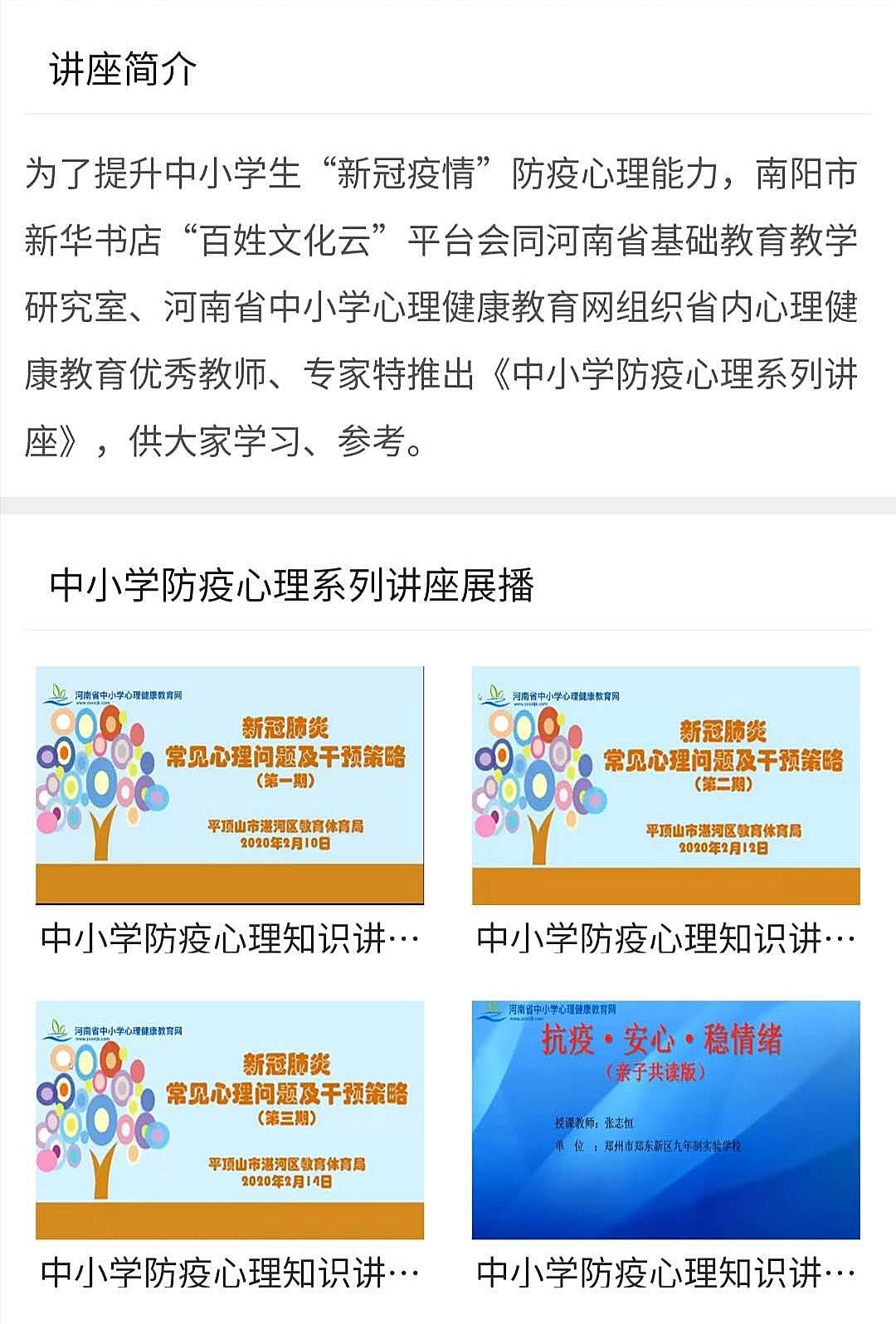 3月11日起,11集《中小学防疫心理知识讲座》正式上线“百姓文化南阳云”。