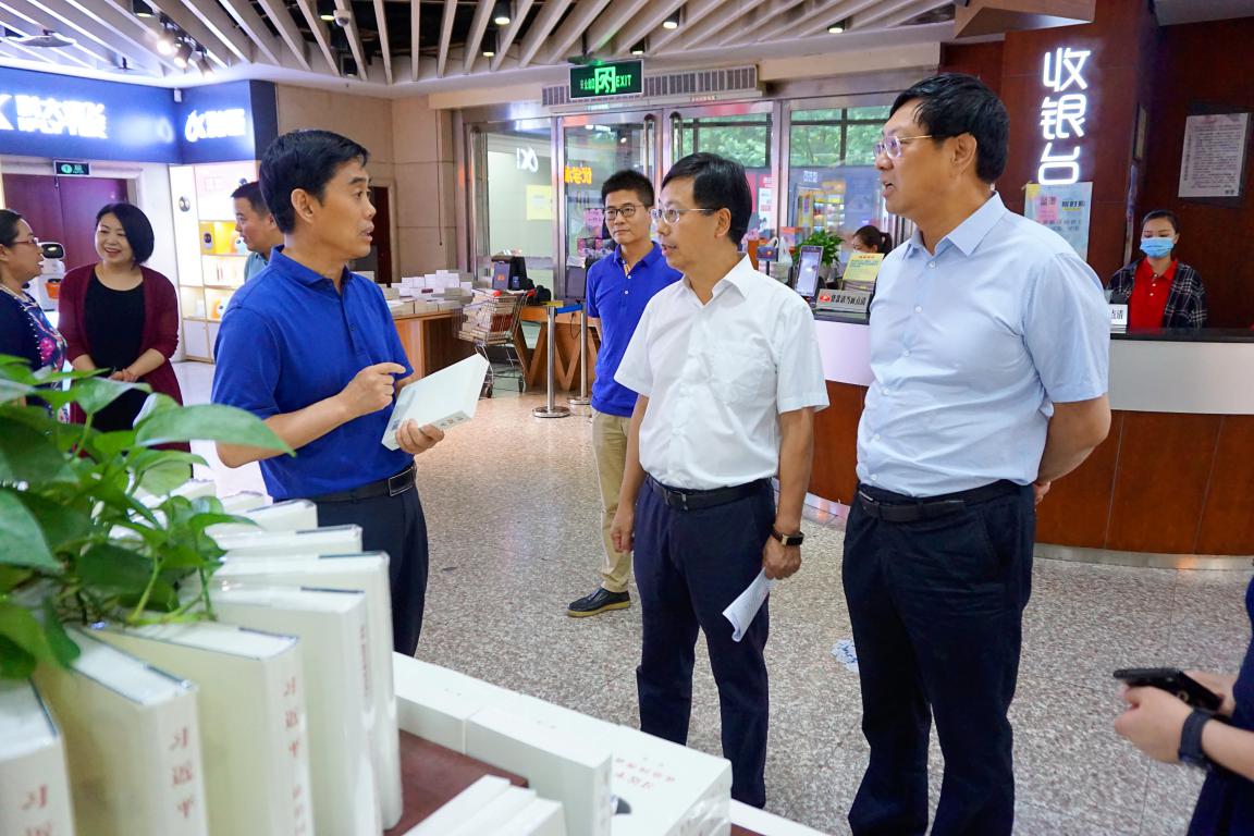 7月22日上午,省委宣传部副部长、省新闻出版局局长谭福森,省委宣传部版权和印刷发行处处长张万勇、调研员侯宏伟一行冒雨前往河南省新华书店调研《习近平谈治国理政》第三卷发行情况。中原出版传媒集团党委书记、董事长郭元军,中原大地传媒股份有限公司副总经理、河南省新华书店发行集团总经理宋保安陪同调研。