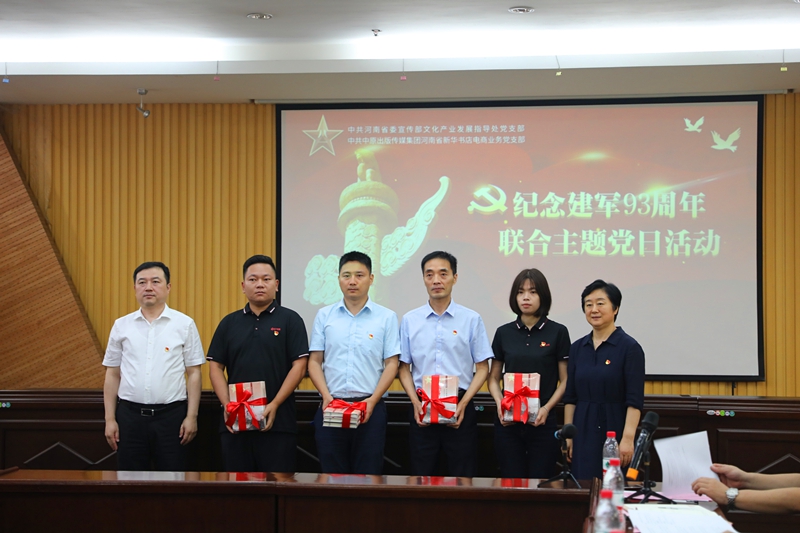 活动中,省委宣传部文产处党支部和发行集团电商业务党支部联合举行了“党组织共建单位”揭牌仪式,并为两个支部的退伍老兵送上了节日慰问。