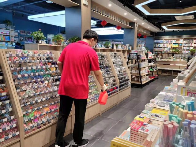 为做好新冠肺炎疫情防控工作,给广大读者创造一个安全健康的购书环境,几乎每一家书店都对店门口、咖啡座、办公室等重点公共区域进行了消毒。同时还会不定时地对书架、收银台、查阅台、楼梯扶手等读者经常接触的公共服务设施进行消毒,确保环境干净整洁。