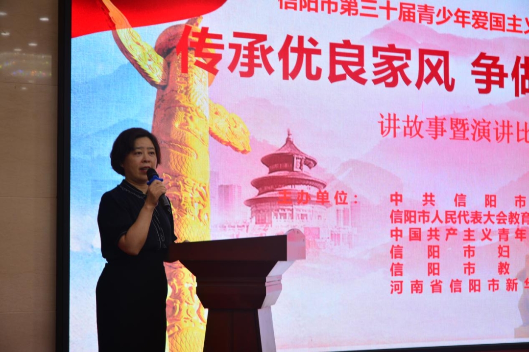 为进一步引导广大青少年传承优良家风、弘扬新时代文明风尚,积极推动营造新时代爱国主义教育浓厚氛围,7月6日上午,由中共信阳市委宣传部、市人大教科文卫委员会、共青团信阳市委、市妇女联合会、市教育体育局、市新华书店主办的信阳市第三十届青少年爱国主义读书教育活动讲故事演讲比赛暨第三十一届读书活动启动仪式在浉河宾馆会议厅隆重举行。市委宣传部常务副部长余金霞出席活动并致辞。