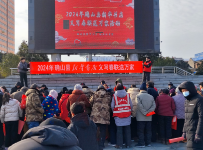 1月26日,确山县新华书店结合运用全省书店春节春联征集成果,联合县文联组织开展了“义写春联送万家”活动,特邀确山县文联的书法家们挥毫泼墨义写春联,把新年的祝福送给了广大群众,为书香确山建设添砖加瓦。
