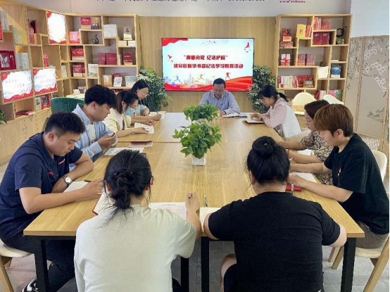 5月7日,建安区店组织年轻干部职工开展“青春向党 纪法护航”纪法学习教育活动。活动中,青年干部职工集体学习《中国共产党纪律处分条例》、观看警示教育片,深刻领悟党风廉政建设和反腐败斗争的艰巨性和重要性,并结合自身工作实际,畅谈学习感悟。活动最后开展党纪学习教育知识答题环节,检验学习成果,推进党纪学习入脑入心、落实见效。