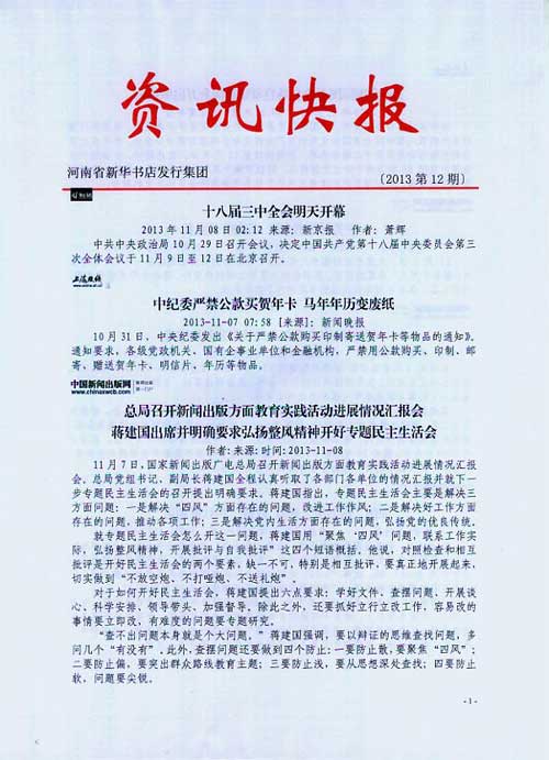 来源:河南省新华书店发行集团有限公司  作者:河南省新华书店发行集团有限公司  发布时间:2013/11/8 12:40:32  阅读次数:7504