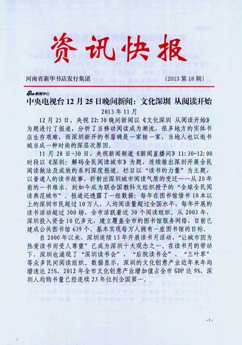 来源:河南省新华书店发行集团有限公司  作者:河南省新华书店发行集团有限公司  发布时间:2013/12/26 12:09:33  阅读次数:8170