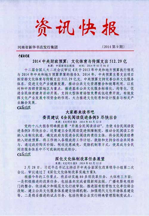 来源:河南省新华书店发行集团有限公司  作者:河南省新华书店发行集团有限公司  发布时间:2014/3/14 10:46:22  阅读次数:13362