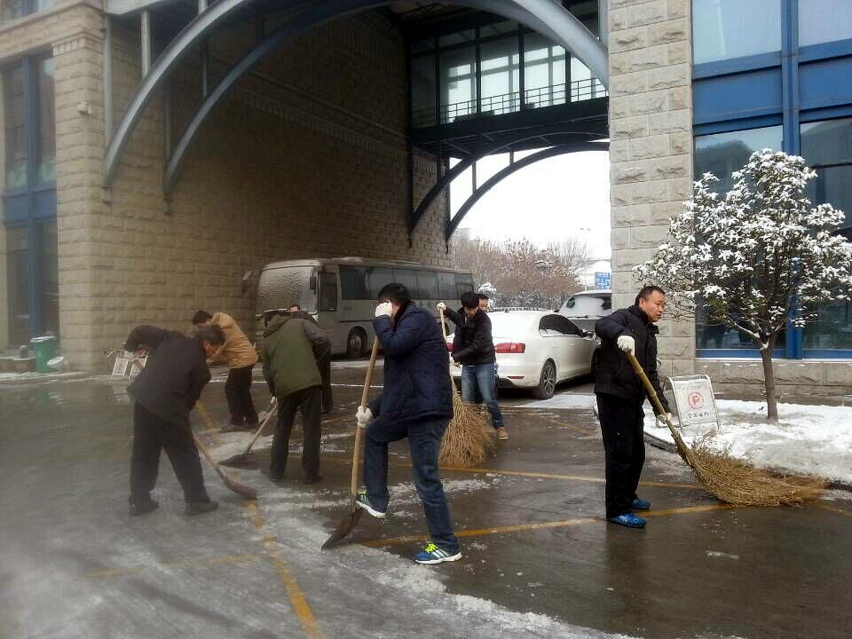 昨日,郑州迎来第一场大雪,路面积满一层厚厚的冰雪,给出行人员带来不便。清晨,发行集团员工自发组织清扫路面积雪,大家挥动铁锹和扫帚互相配合,分工协作,清扫现场热火朝天。经过近1个小时奋战,把公司周围路面的积雪清理干净。