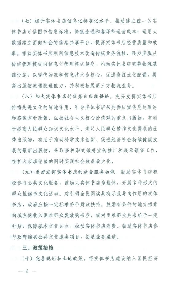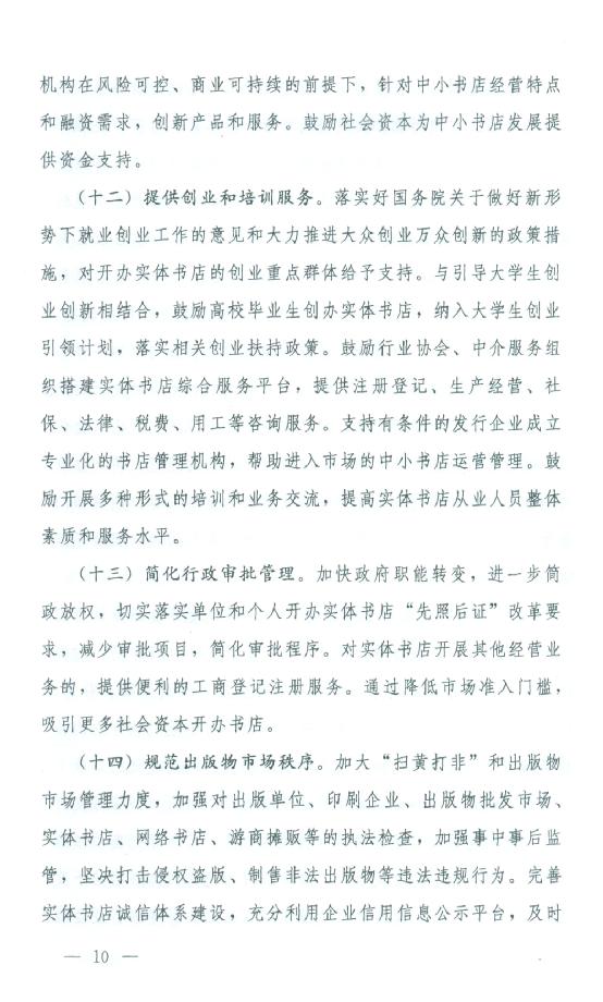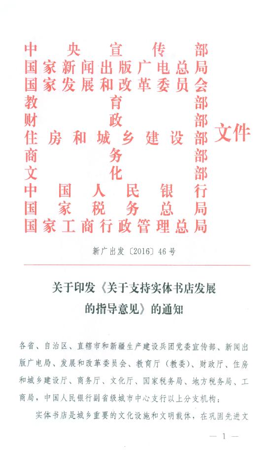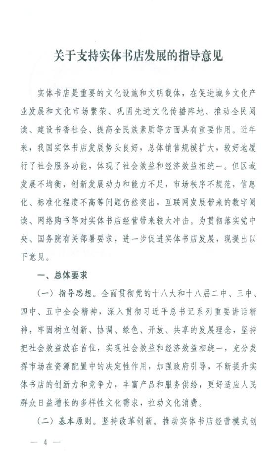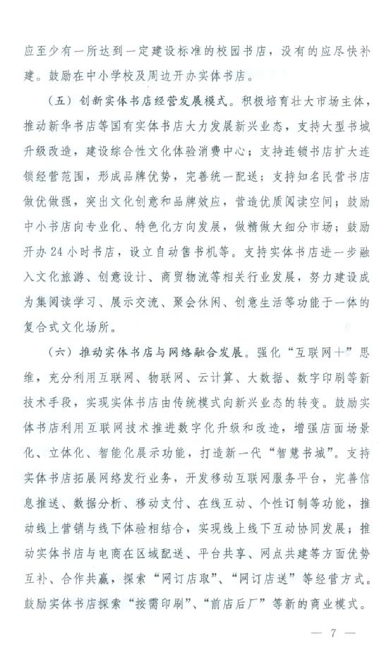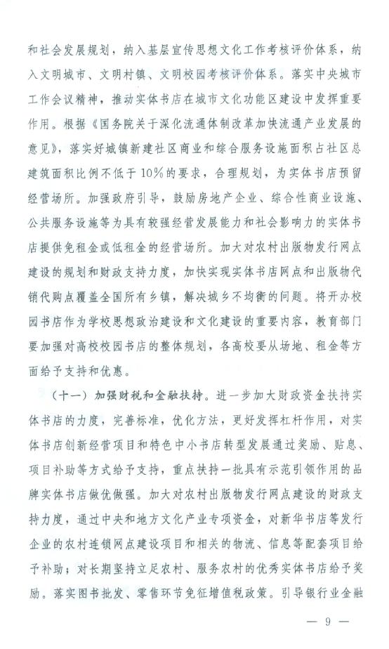 关于印发《关于支持实体书店发展的指导意见》的通知