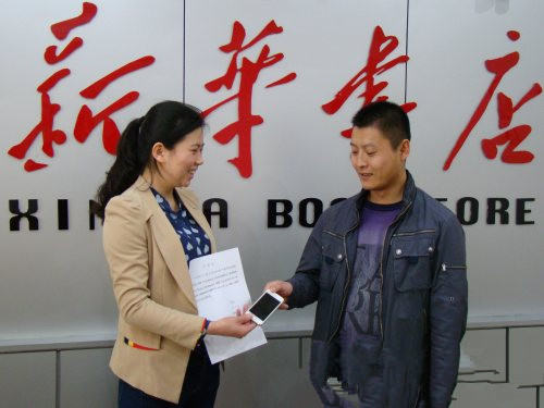 4月24日早上,陕县县店员工辛冰涛、闫勇在新华书店门口拾到一部苹果5S手机,办公室成宝良立刻在西部晨风、陕县动起来健身俱乐部、陕县外宣和陕县文明办等QQ群里转发“急寻失主”消息,同时焦急等待失主。经过一小时,失主与店里取得联系后领取了手机,对新华书店员工拾金不昧的行为表示万分感谢。