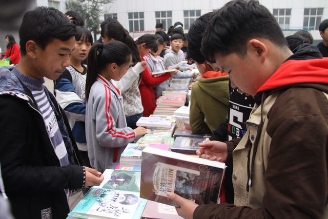 活动期间,该校学生积极参与、踊跃挑选,尤其在励志、文学、历史、益智等展位,随处可见同学们认真捧读的情景。