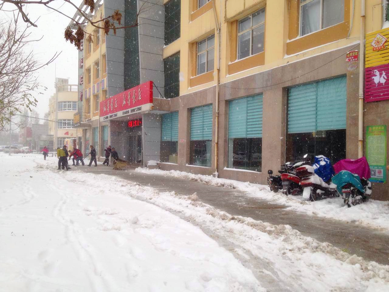 11月24日清晨,市店职工开始清扫中心门市部的路面积雪。经过大家的共同努力,从机动车道通往市店中心门市部的路面已经清扫出一条通道,在方便顾客出入的同时,确保各个部门工作的正常运营。