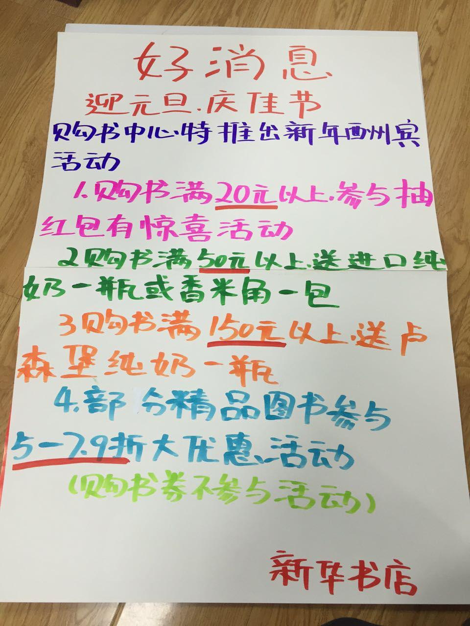 喜迎元旦,欢庆佳节。新密市店在2016年元旦来临之际,为回馈广大读者,积极推出购书抽奖、购书赠礼、打折优惠等营销活动,另外还精心布置卖场,营造节日氛围,抓住消费契机,拉动销售增长。